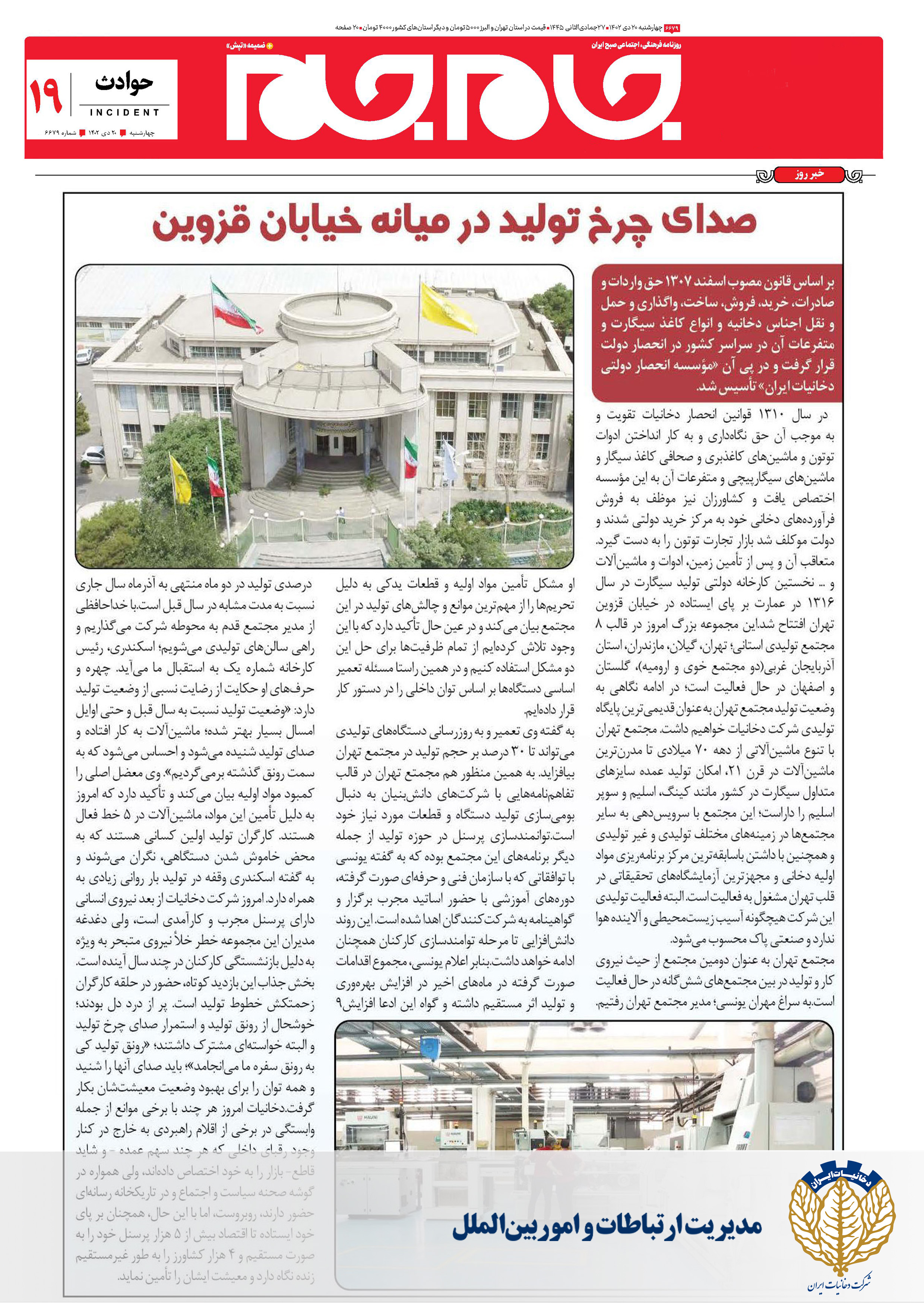هر چند دخانیات و استعمال آن به حکم علم و فتوای عقل، مضرات بسیار دارد، ولی از باب عادت دیرینه بخشی از مردمان، صورتی کالایی پیدا کرده و به نیازی از سیاهه بلند زیست مدرن تبدیل شده که میبایست پاسخی برای آن اندیشید تا هم از سلامت محصول و به بیان دقیقتر، کم ضرر بودن آن، اطمینان حاصل کرد و هم سرمایه مردمان برای تأمین این نیاز به صورت ارز به خارج از کشور منتقل نشود. از این که بگذریم و باز بر دفترچه خاطرات طهران که بنشینیم، هنوز هم برای بسیاری این پرسش مطرح است که در پشت این دیوارههای قدیمی و بلند و ساختمانهای نوستالژیک عمارت بر پای ایستاده خیابان قزوین چه میگذرد؟