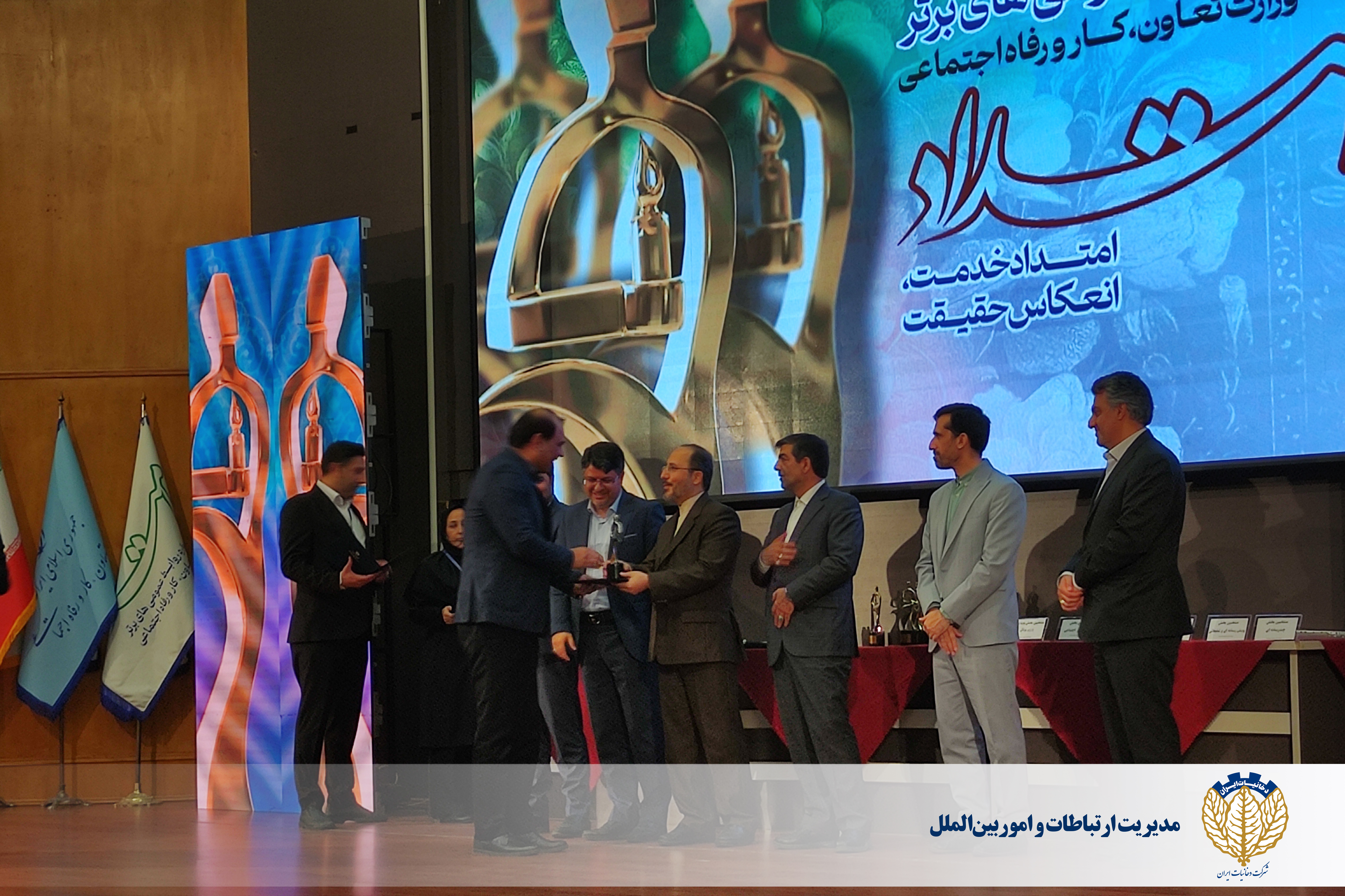 به گزارش مدیریت ارتباطات و امور بینالملل شرکت دخانیات ایران، آئین اختتامیه نخستین جشنواره روابط عمومیهای برتر وزارت تعاون، کار و رفاه اجتماعی؛ «امتداد» و سومین گردهمایی ملی مدیران روابط عمومی این وزارتخانه، شنبه 28 بهمن، با حضور سپهر خلجی؛ رئیس شورای اطلاعرسانی دولت، رضویکیا؛ رئیس جشنواره و رئیس مرکز روابط عمومی و امور بینالملل وزارت تعاون ، موسوی؛ مدیرعامل سازمان تأمین اجتماعی، صالحی؛ دبیر شورای اطلاعرسانی دولت، مدیران روابط عمومی شرکتهای تابعه این وزارتخانه و ... در محل مجموعه فرهنگی تلاش برگزار شد.