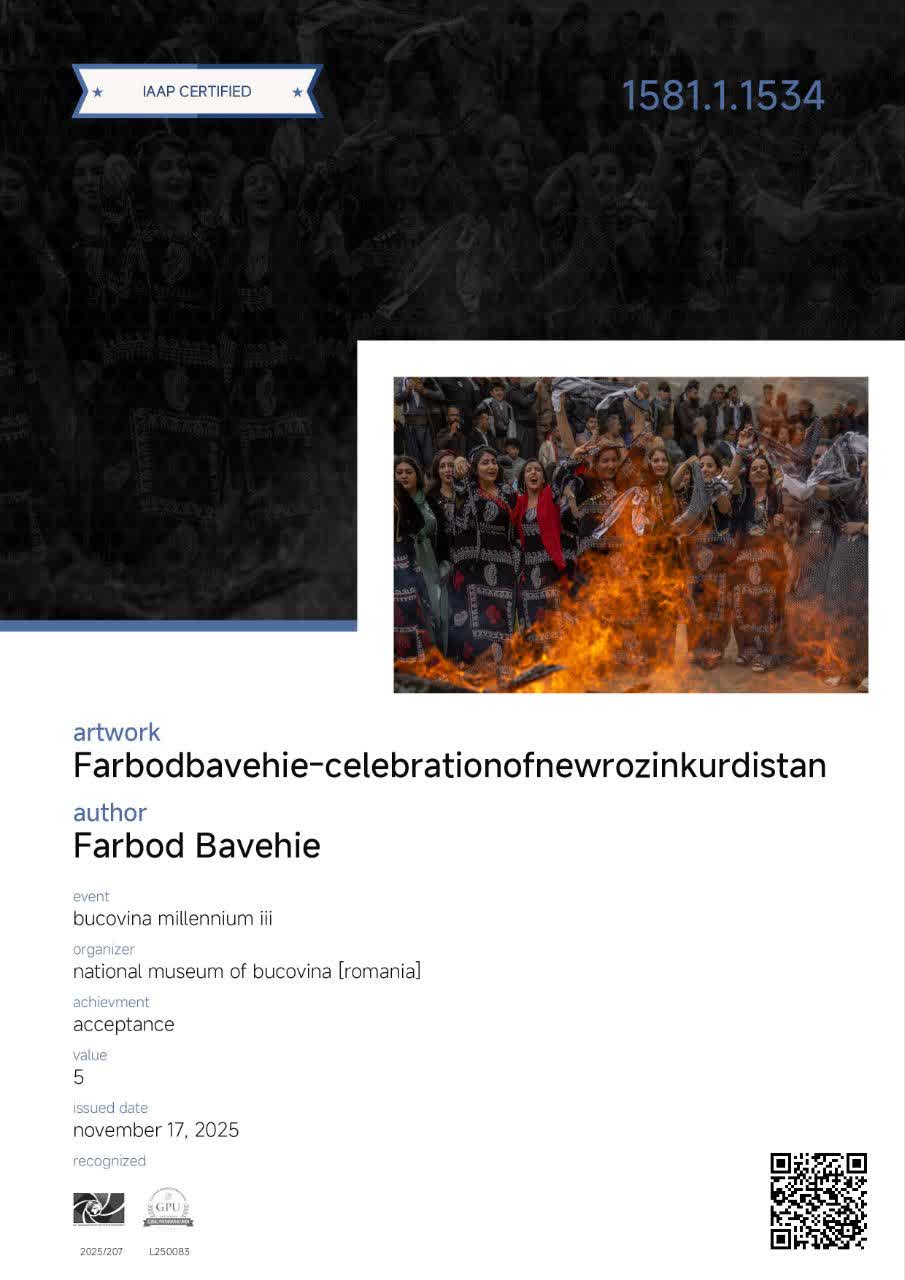 باوهای می گوید: باعث افتخار من است که عکسهایی از «نوروز در کردستان» در کتاب رسمی نمایشگاه بینالمللی عکس در شهر آنسان ۲۰۲۵ در کرهجنوبی منتشر شدهاند.