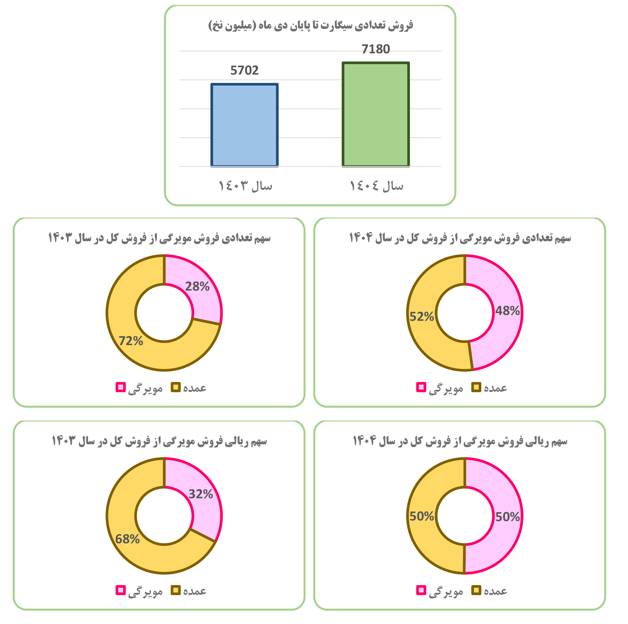 به گزارش مدیریت ارتباطات و امور بین الملل ، فروش شرکت دخانیات ایران تا پایان دی ماه سال جاری به 7180 میلیون نخ رسید که نسبت به مدت مشابه سال قبل از نظر تعدادی 26 درصد و از نظر ریالی 80 درصد رشد نشان میدهد. همچنین آمارها نشان میدهند سهم تعدادی فروش مویرگی از کل فروش در سال جاری 48 درصد بوده که در مقایسه با مدت مشابه سال گذشته 20 درصد افزایش داشته است. فروش مویرگی بهعنوان فروش مطمئن تلقی میشود زیرا بهسرعت به دست مصرف کنندة نهایی میرسد، از دپو شدن محصولات در انبارها ممانعت نموده و برای تنظیم بازار محصولات و مدیریت قیمتها فرصت بیشتری برای شرکت فراهم میآورد.