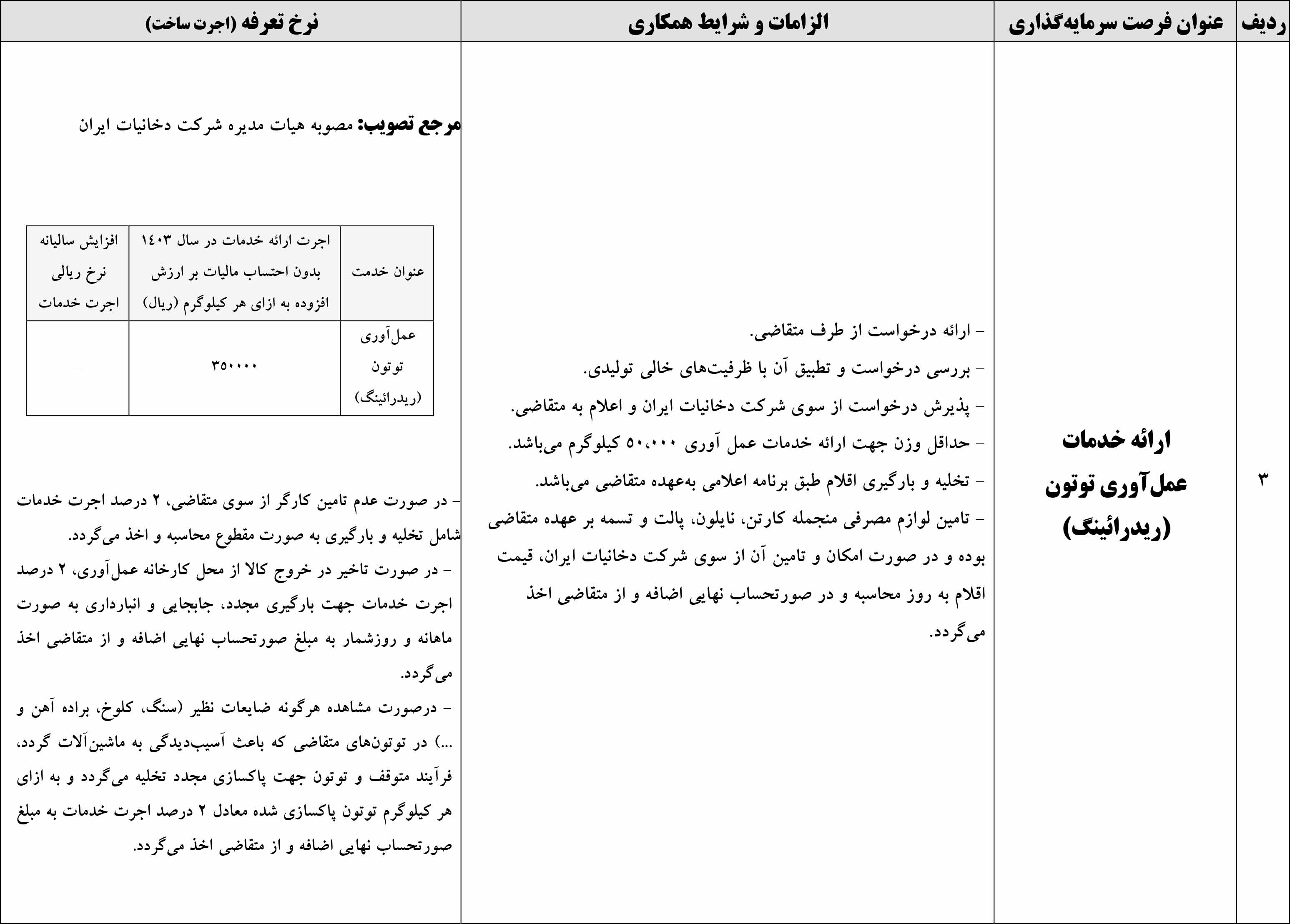 مرجع تصویب: مصوبه هیات مدیره شرکت دخانیات ایران